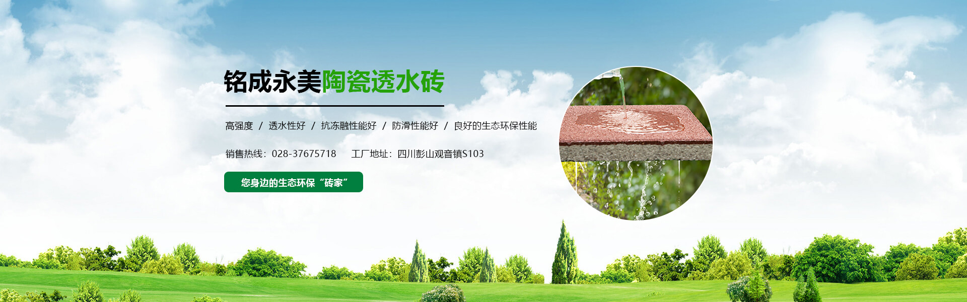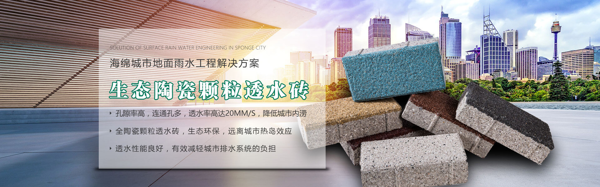四川銘成永美環保科技有限公司(www_mcotcn_com.apiarytech.cn)是國內非常早研究探索海綿城市的企業之一,公司主導產品:海綿城市鋪路磚家---銘成永美生態陶瓷透水磚已在全國多個重點項目使用。公司透水混凝土、雨水收集利用系統正在全國推廣。公司將整合海綿城市規劃設計、污水處理、污泥利用、環保設備、社會資本等海綿城市相關產業。為解決城市“熱島效應”、地表硬化,防止城市內澇,營造高質量的自然生態環境,改善城市生態平衡而不斷努力!公司將充分利用現有的互聯網資訊平臺,整合生態海綿城市產業鏈,打造集互聯網、科研、生產、銷售、規劃設計、PPP項目營運、工程施工為一體的綜合性環保科技公司,已初步建立覆蓋全國的業務團隊和渠道。